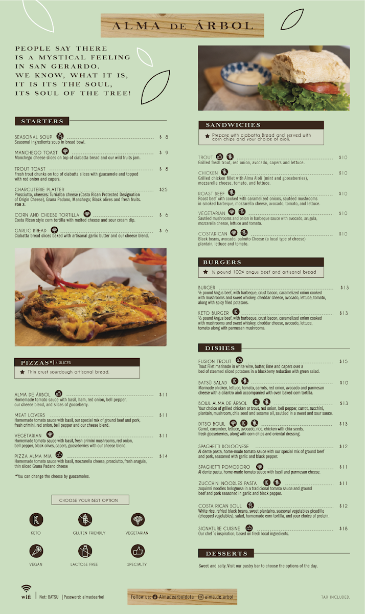 Welcome to Alma de Arbol in stunning San Gerardo de Dota, where every dish is a celebration of local flavors and fresh ingredients. This charming restaurant has quickly become a must-visit spot, drawing rave reviews for its delightful menu and warm atmosphere.